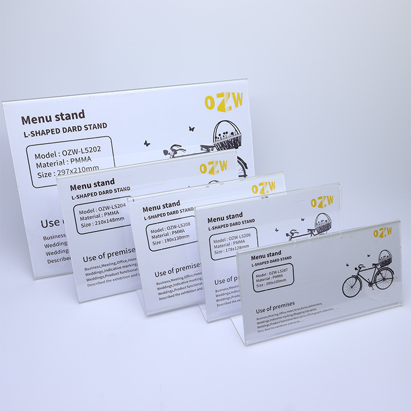 Customizable L-shaped Transparent Acrylic Table Cards for Menu Display